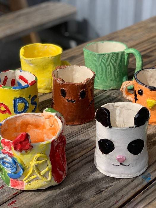 Create colorful ceramic mugs, bowls and figurines and we'll fire in the kiln. All pottery is dishwasher, microwave and food-safe.